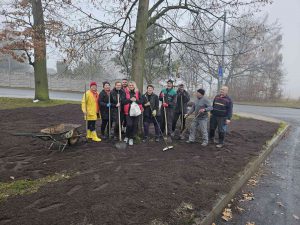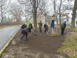 Samospráva sehnala od města cibulky jarních květin, zajistila hlínu na zásyp a přizvala na pomoc brigádníky, kteří státní svátek v ranních hodinách oslavili prací na zkrášlení tohoto prostoru. Zasypaly se nerovnosti, zasadily se cibulky pod odborným dozorem a vysela se tráva.