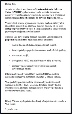 Prosíme občany, aby případné podněty k MHD na základě přiložené výzvy zasílali na mail dana.kupkova@seznam.cz nebo ravandi.irena@gmail.com .